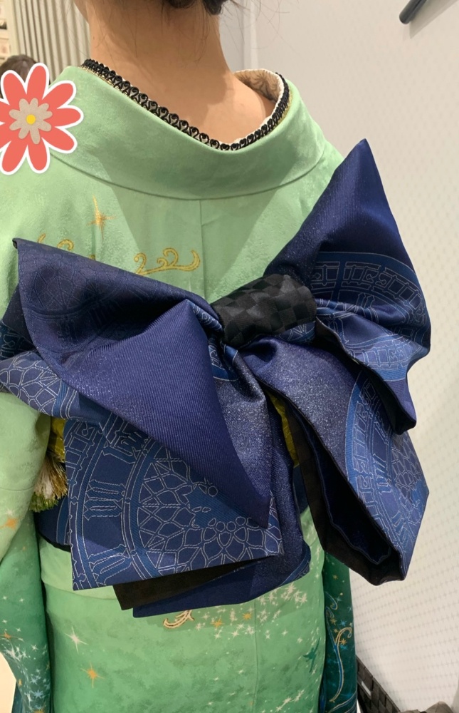 お客様の雰囲気から選んでいただいた着物に帯をコーディネートさせていただきます